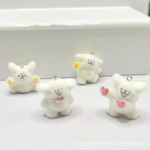 立体的なかわいい漫画樹脂植毛ライン子犬ペンダント DIY 手作りキーホルダーバッグアクセサリー材料