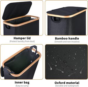 クロスボーダー Amazon ホーム折りたたみ式汚れた衣類バスケット蓋付き収納バスケット竹生地内ポケット付きバスルームと寝室の人気モデル