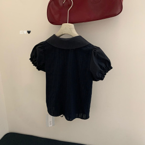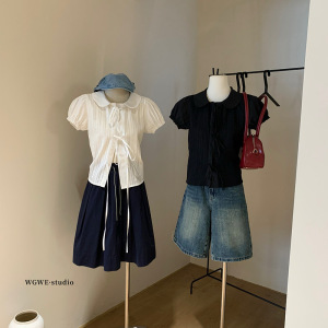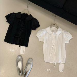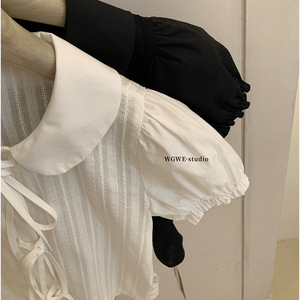 WGWE6134 スイートドールカラーレースアップリボンパフスリーブシャツ、爽やかで万能なシャツ
