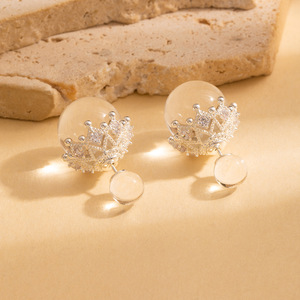 ダイヤモンドがちりばめられた透かし彫りのクリスタル、2WAYで着用できるイヤリング。ファッショナブルで、軽やかな高級感、シンプルでどんなスタイルにも合う、高級感のあるシルバーニードルイヤリング。