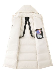 按扣式开叉下摆;内置减负背带;手机袋+温度计;YKK双头门襟链