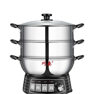 电热锅多功能家用炒菜电炒锅一体插电大容量不锈钢电锅蒸煮炖火锅