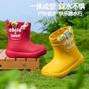 子供用レインブーツ、女の子用ベビーノンスリップレインブーツ、女子学生スクールウォーターシューズ、防水男の子用子供用女性用ラバーシューズ