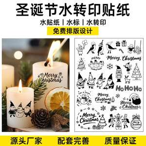 クリスマスウォーターステッカー DIY キャンドル水転写ステッカー装飾クリスマステーマクリエイティブタトゥーステッカー黒と白の新しいスタイル