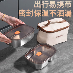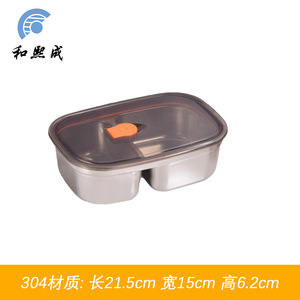 学生向けの 304 ステンレス鋼の鮮度保持ランチボックス、2 つのコンパートメント、厚く深く、大容量のコンパートメント、職場用の蓋付き密閉プレート