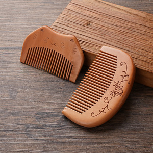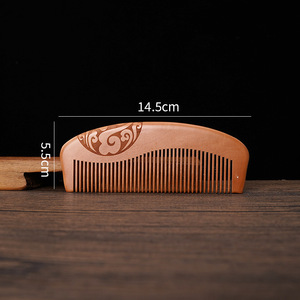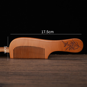 ロングヘア用の天然ピーチウッドコーム、アンティークヘアコーム、細かい歯の静電気防止家庭用コーム、刻印ロゴ