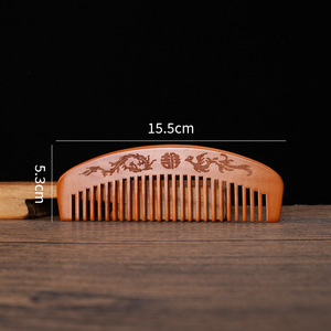 桃の木の月櫛、龍と鳳凰、縁起の良い細かい歯