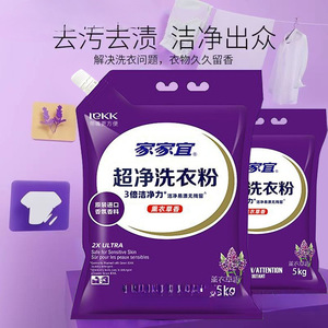 Jiajia Yi ラベンダー ランドリー パウダー 5kg 袋の香りの超きれいな汚れ除去剤 ファミリー パック 簡単に漂白でき、口付き、防湿、送料無料