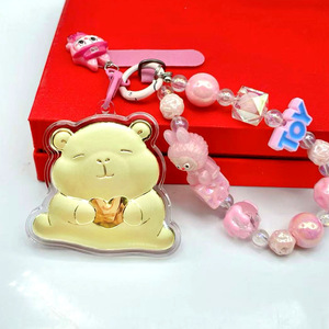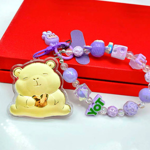 純金 999 ラブブ携帯電話チェーンゴールドラブブ漫画キャラクターバッグペンダントキーホルダーペンダントギフト