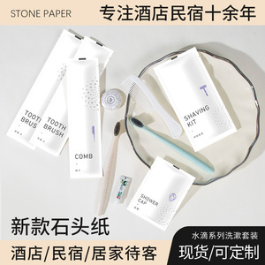 星级酒店民宿一次性用品石头纸防水包装高档民宿牙刷洗漱套装批发