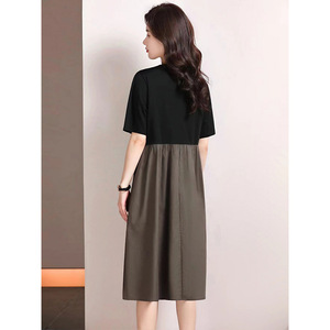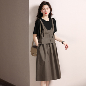 ティーブレイクフレンチドレス女性の夏の 2025 新しいカジュアル韓国スタイル Tシャツスカート夏の偽ツーピーススーツスカート