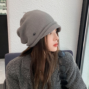 秋冬帽子女显脸小堆堆帽韩版百搭包头护耳帽保暖针织毛线帽月子帽