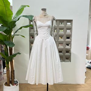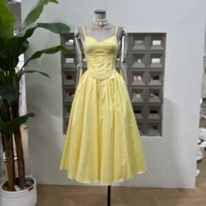 Amazon 2025年夏新作 リゾート風レースアップフェイクツーピースウエストふわふわフレンチサスペンダードレス着痩せ