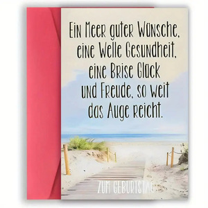 封筒付きの国境を越えた人気の誕生日グリーティング カード、面白い英語の文字、写真付き、あらゆるスタイルに使用でき、緊急注文も受け付けています。