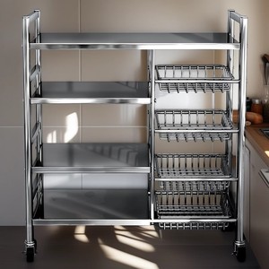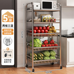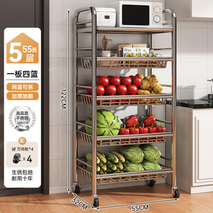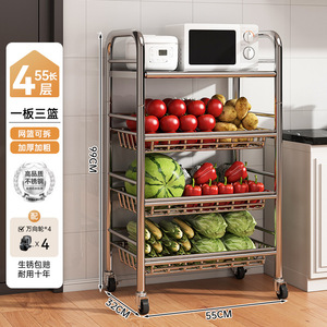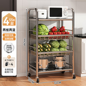 ステンレス鋼野菜バスケットキッチン多機能収納ラック床置きモバイル多層電子レンジポット野菜収納ラック