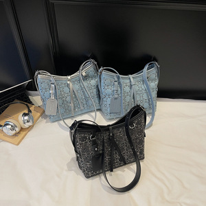 新しいスタイルの女性のバッグ韓国スタイルのファッショナブルな明るいダイヤモンドショルダーメッセンジャーバッグニッチデザインハイエンド脇の下バッグメーカー卸売