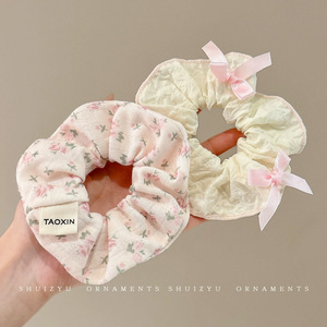 花柄リボンヘアゴム、スイートガールハートボールヘッドバンド、高弾性ポニーテールゴムバンドヘアロープヘッドバンド