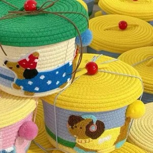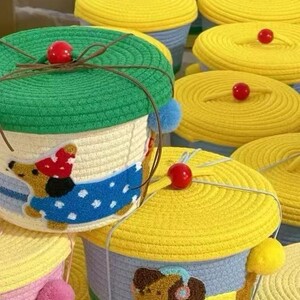 蓋付きデスクトップ木製ビーズデザインかわいい子犬収納バケツベビー満月バスケット百日宴会誕生日ケーキ誕生