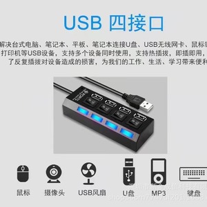 厂家批发USB分线器 带开关/灯HUB 4口集线器 电脑/笔记本即插即用