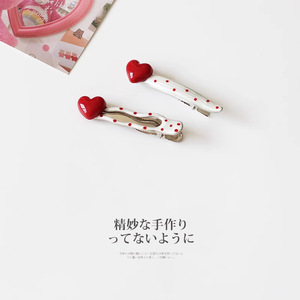 【ペアセット】レッドラブ水玉ウィローリーフクリップ
