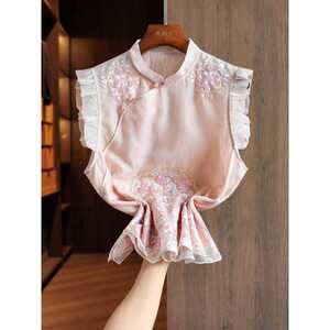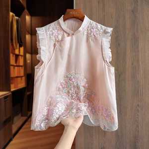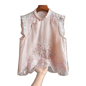 改良された翡翠バックルシルクオーガンザ新中国風ベスト女性の重工業刺繍桑シルク国民風トップ