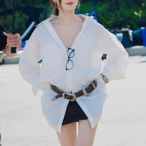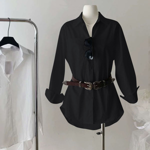 2025 春夏新白ポロカラーシャツドレス女性のウエスト気質ミッドレングスシャツウエスト