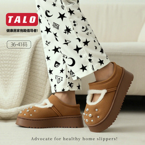 2025秋冬新作女性用包頭スリッパ、クロスボーダーネットセレブ厚底増量メリージェーンコットンスリッパパールスタイル
