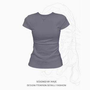 灰小圆领修身短袖 收腰辣妹t恤