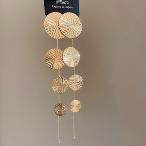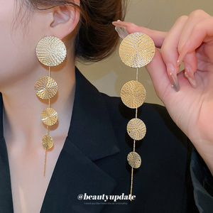 シルバー針メタルラウンドパターンロングタッセルイヤリングヨーロッパとアメリカのシンプルな多用途イヤリングイヤリングデザインニッチ女性