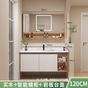 メインキャビネット + スマートミラーキャビネット + スレート洗面器-120cm [蛇口付属品一式無料]