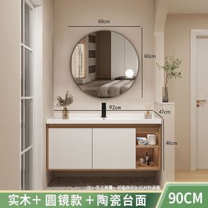 メインキャビネット + スマートミラーキャビネット + 一体型セラミック洗面器-90cm [蛇口付属品の無料フルセット]