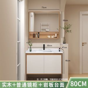 メインキャビネット + スマートミラーキャビネット + スレート洗面器-80cm [蛇口付属品一式無料]