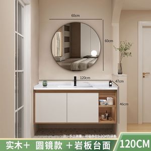 メインキャビネット+丸鏡+スレート洗面器-120cm【蛇口付属品一式無料】