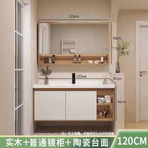 メインキャビネット + 通常ミラーキャビネット + 一体型セラミック洗面器-120cm [蛇口付属品一式無料]