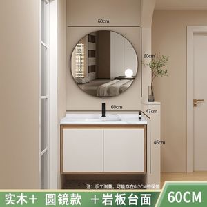 メインキャビネット+丸鏡+スレート洗面器-60cm洗面器【蛇口付属品一式無料】