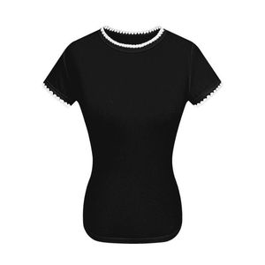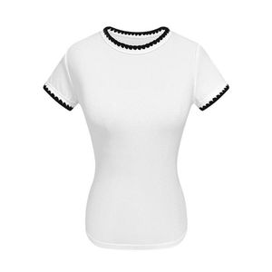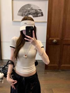 【自家工厂现货】正肩修身T恤撞色刺绣上衣短袖小众女夏