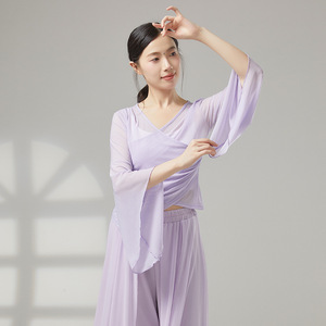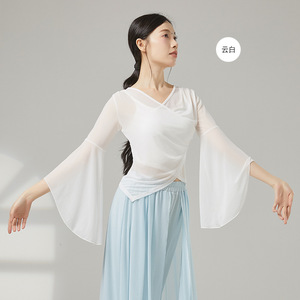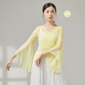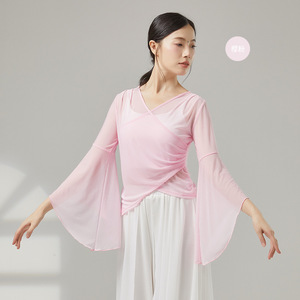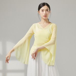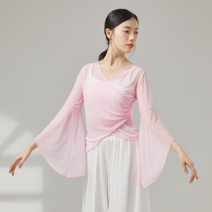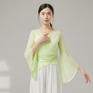 古典舞踊のダンス服、新しい弾性メッシュトップ、エレガントなガーゼ練習服、中国舞踊の民族パフォーマンス服