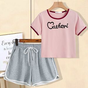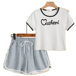 2025新款小清短袖插色显瘦短款冰丝上衣恤_韩版短裤两件套女