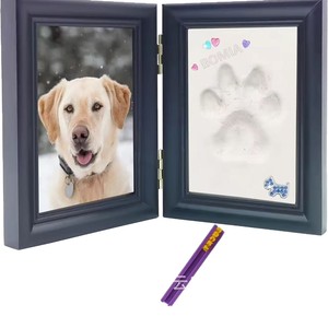 木製ペットフォトフレーム足跡折りたたみ足跡手形泥テーブル木製ペット手形と足形記念フォトフレーム