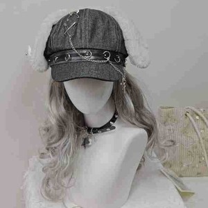 オリジナル y2k ミレニアムホットガールニッチかわいいリボンサブカルチャー八角形帽子女性の秋多用途金属チェーン