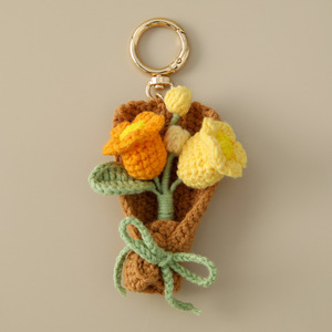 25年韓国風かぎ針編み新作フラワーキーホルダーシーズン6双頭スズランペンダントグラデーションカラーオンシンドリ