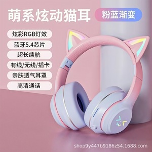 光る猫耳 Bluetooth ヘッドセット ヘッドマウント ステレオ サウンド 高品質 ワイヤレス スポーツ ゲーム 音楽を聴く 学習クラス