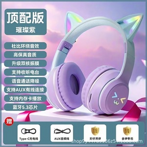 撃たないでください!ギフトボックス+妖精紫帯猫耳(★ブルートゥース5.3★タイプCインターフェース★無料のベルベットバッグ★マイク付属)公式標準構成