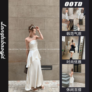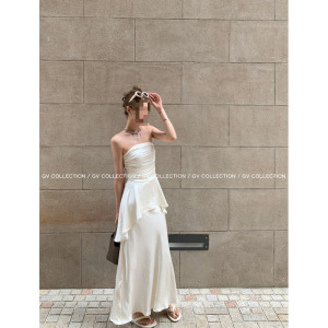 2025年夏の豪華でシンプルな雰囲気のサテンウエストプリーツウエストチューブトップ光沢スカートマーメイドスーツ