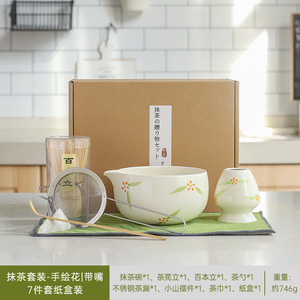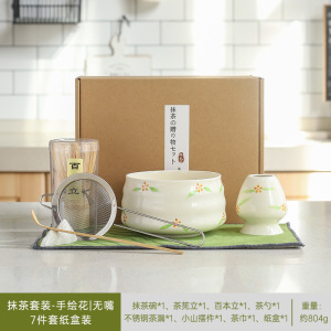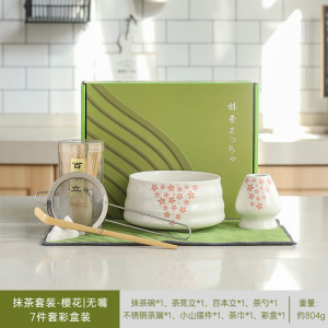 手描き桜 和風抹茶ボウル 抹茶道具セット 朝食ラテ 抹茶泡立て器 7点セット