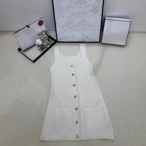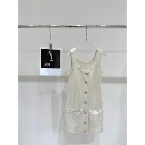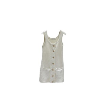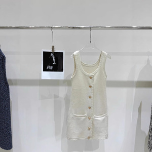 2025 新しい夏のスタイルトライアンフゴールドバックル織りノースリーブシングルブレストサスペンダードレスルーズで多用途な女性のロングスカート