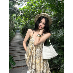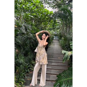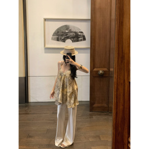 【ビンゴ】+シャヘ25春不規則ヒョウ柄ビーズキャミソール+ワイドパンツオールドマネースタイルクールパンツ