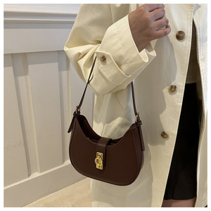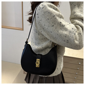 2025新款复古纯色女包时尚流行质感大容量锁扣单肩腋下新月包女包