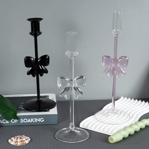 かわいいピンクのリボンガラス燭台ロマンチックな儀式の感覚の婚約デスクトップお祝いの装飾高価値の装飾品