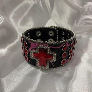 ヨーロッパとアメリカのクロスボーダーブレスレットクロスブレスレットメンズヒップホップホットガールパンクラインストーンブレスレットパーソナライズされたレザーリベットブレスレット